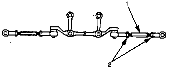 1. To adjust the toe-in angle, loosen the lock nuts (2) on the outer track rods (1) and turn the outer track rods.