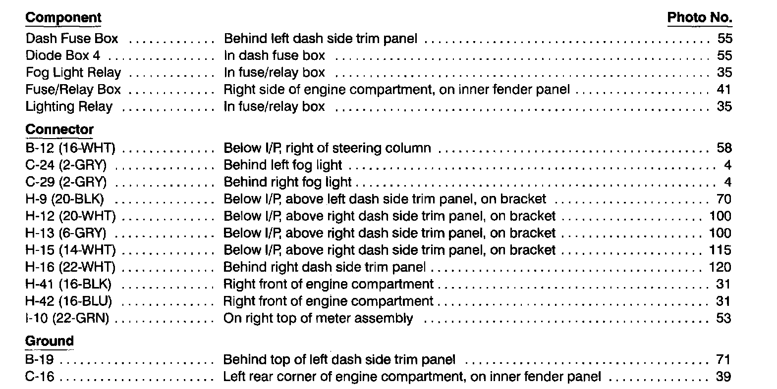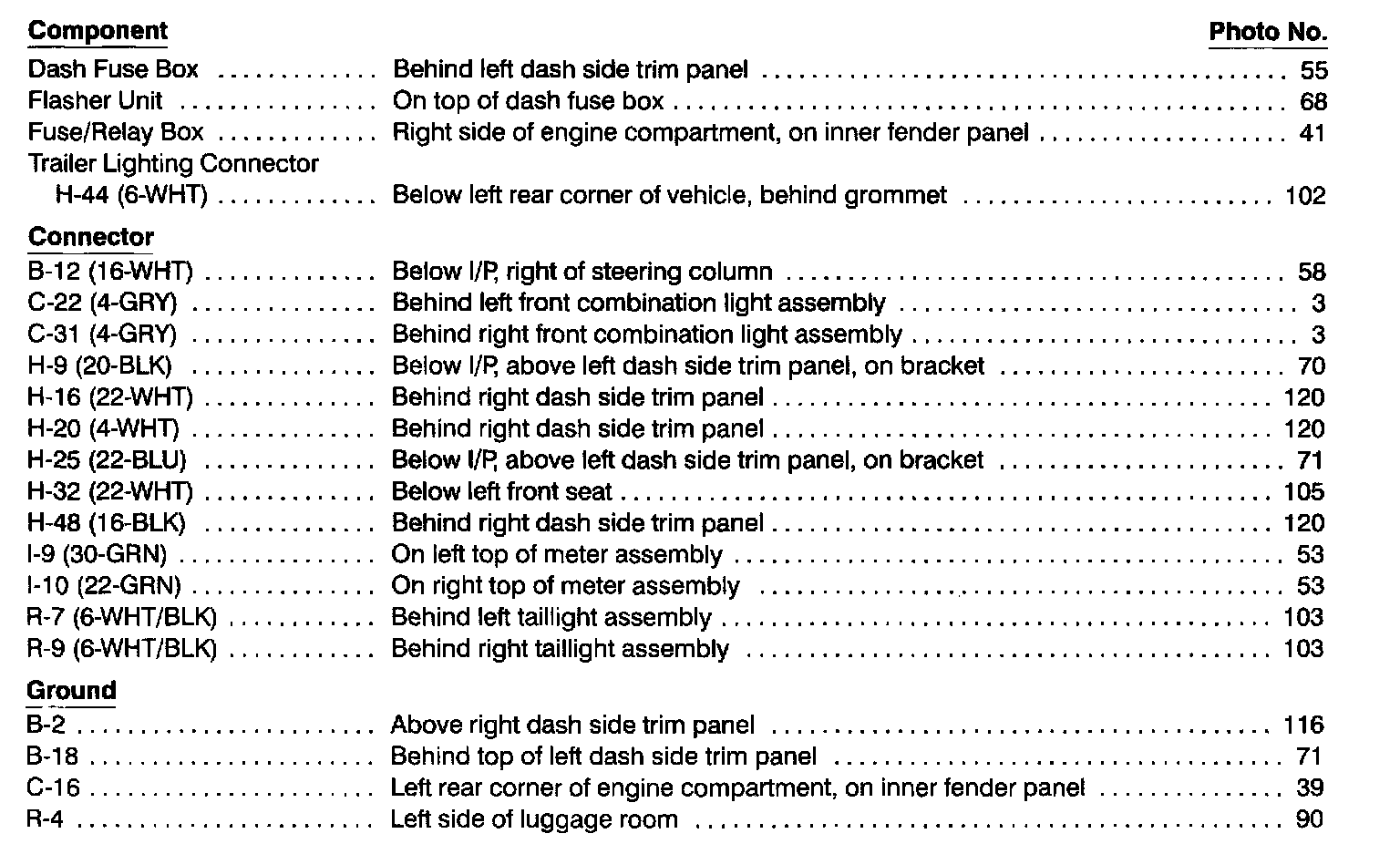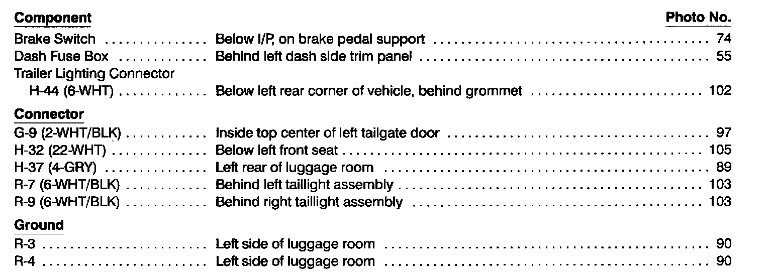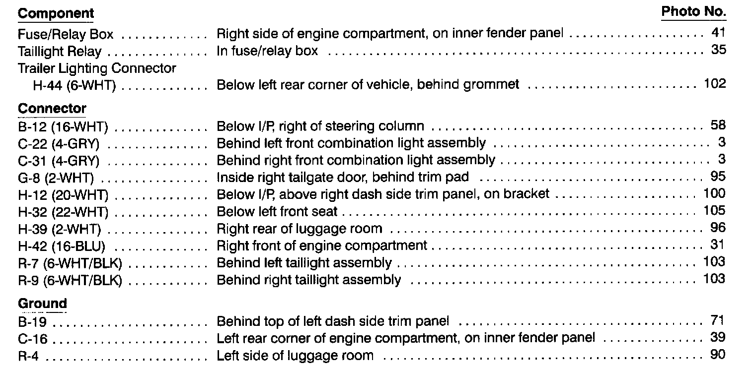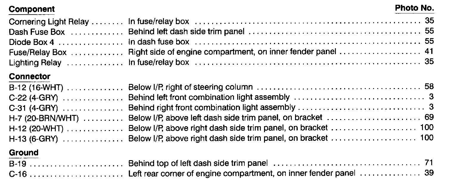 Front Side Marker, Front/Rear Park, & License Plate Lights Index: