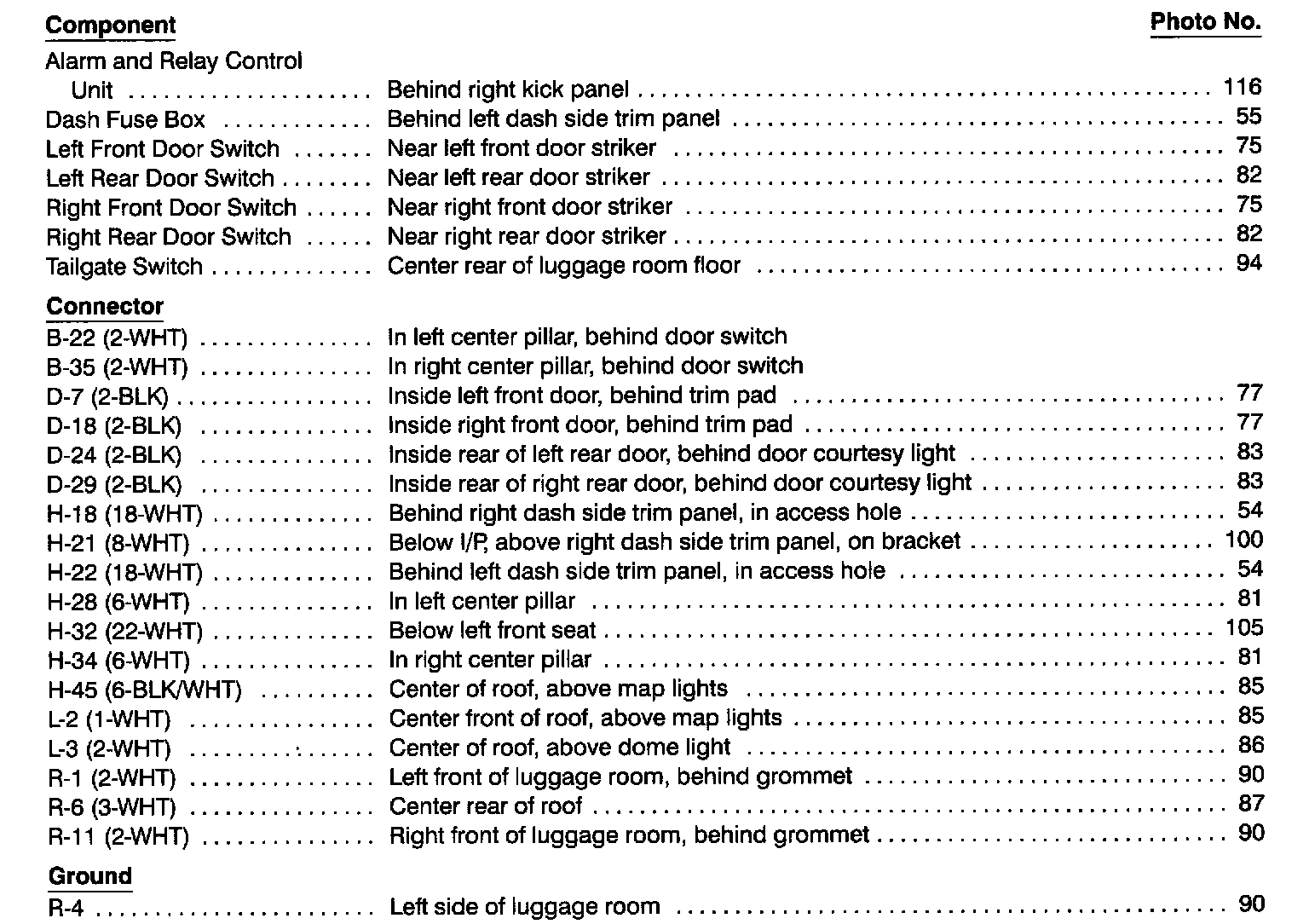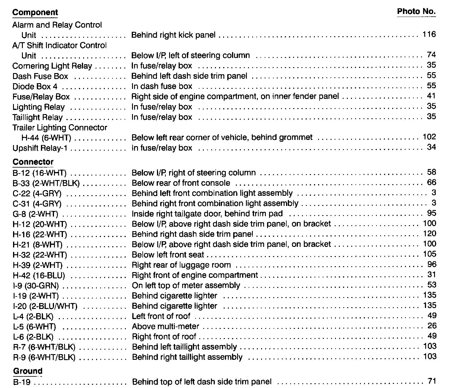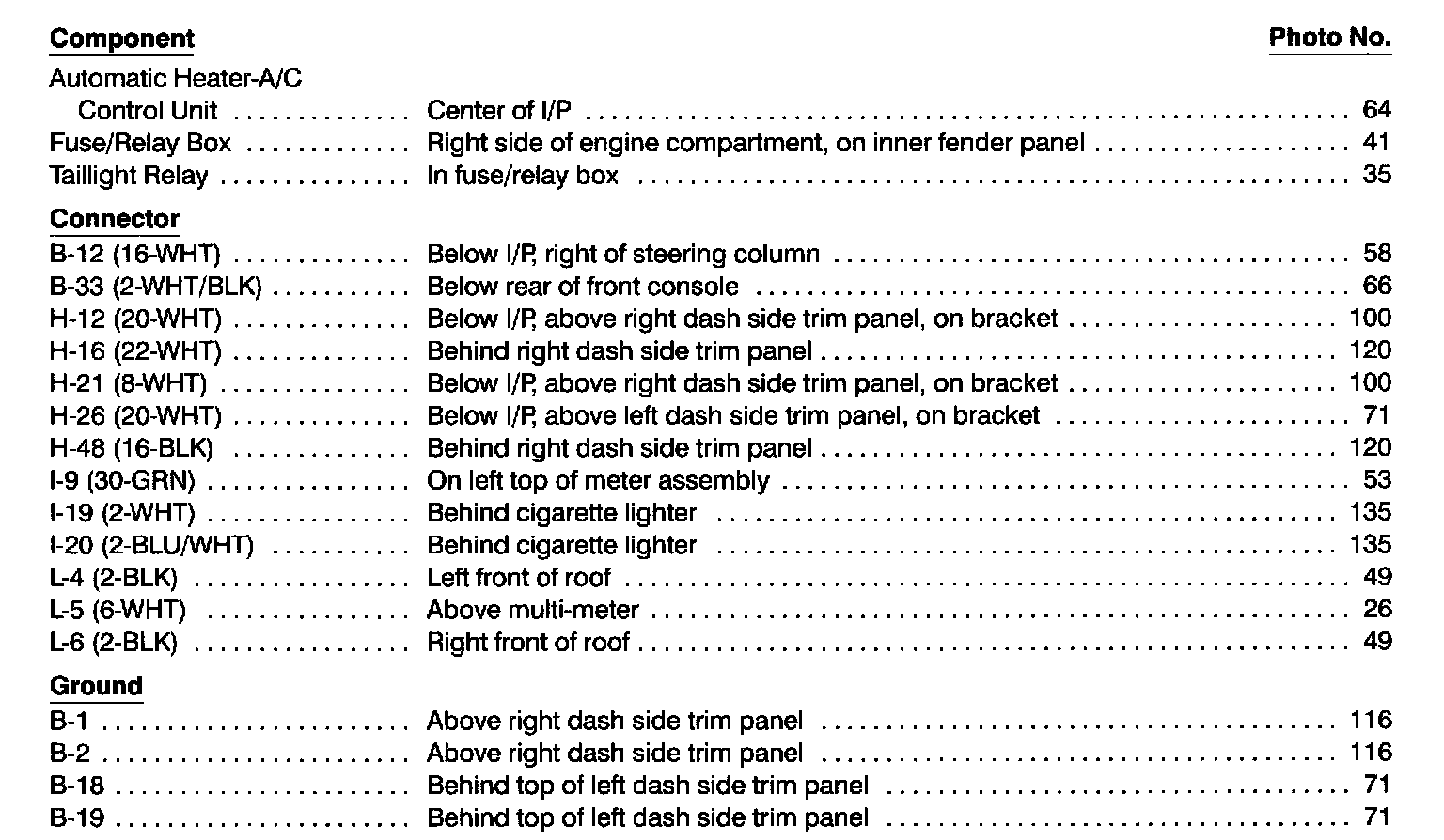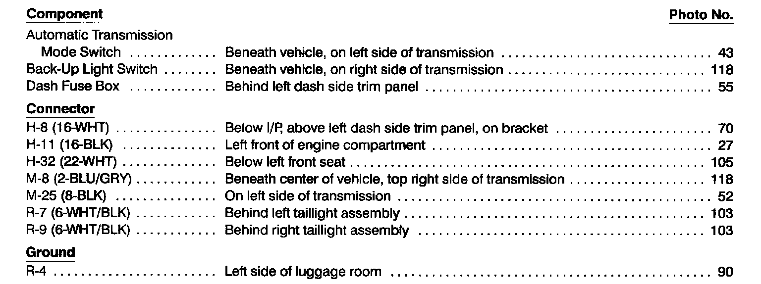 Front Side Marker, Front/Rear Park, & License Plate Lights Index: