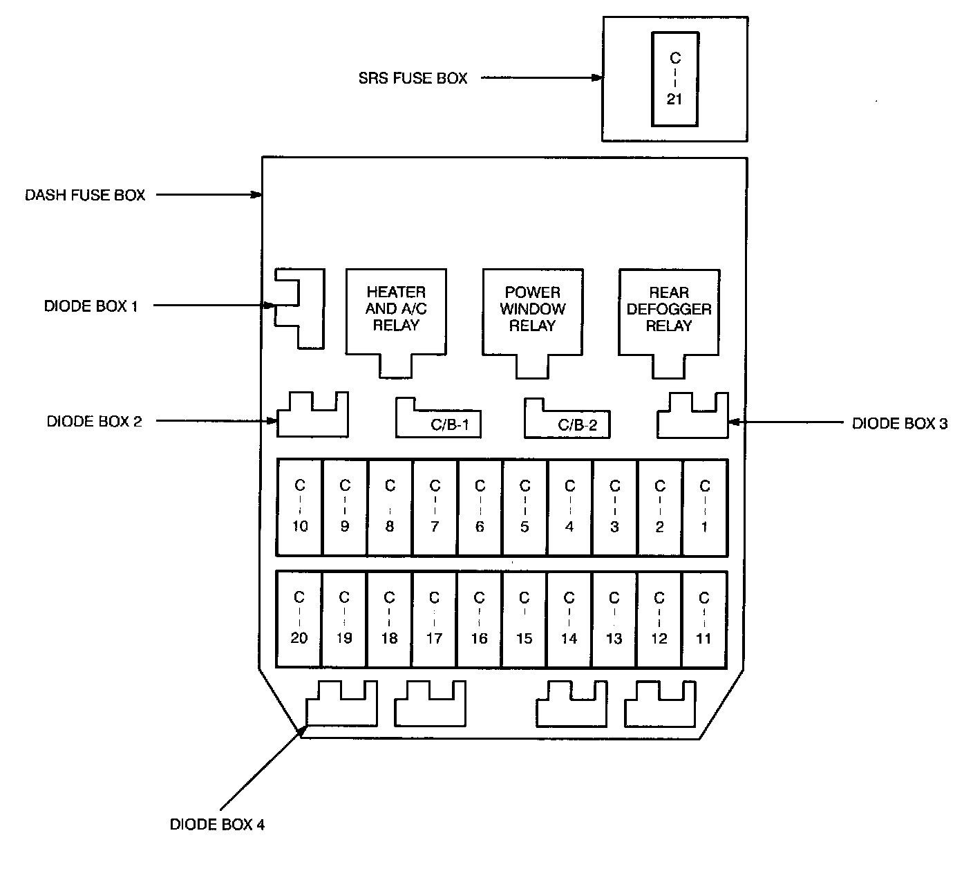 Fuse/Relay Box & Dash/SRS Fuse Box Locations: