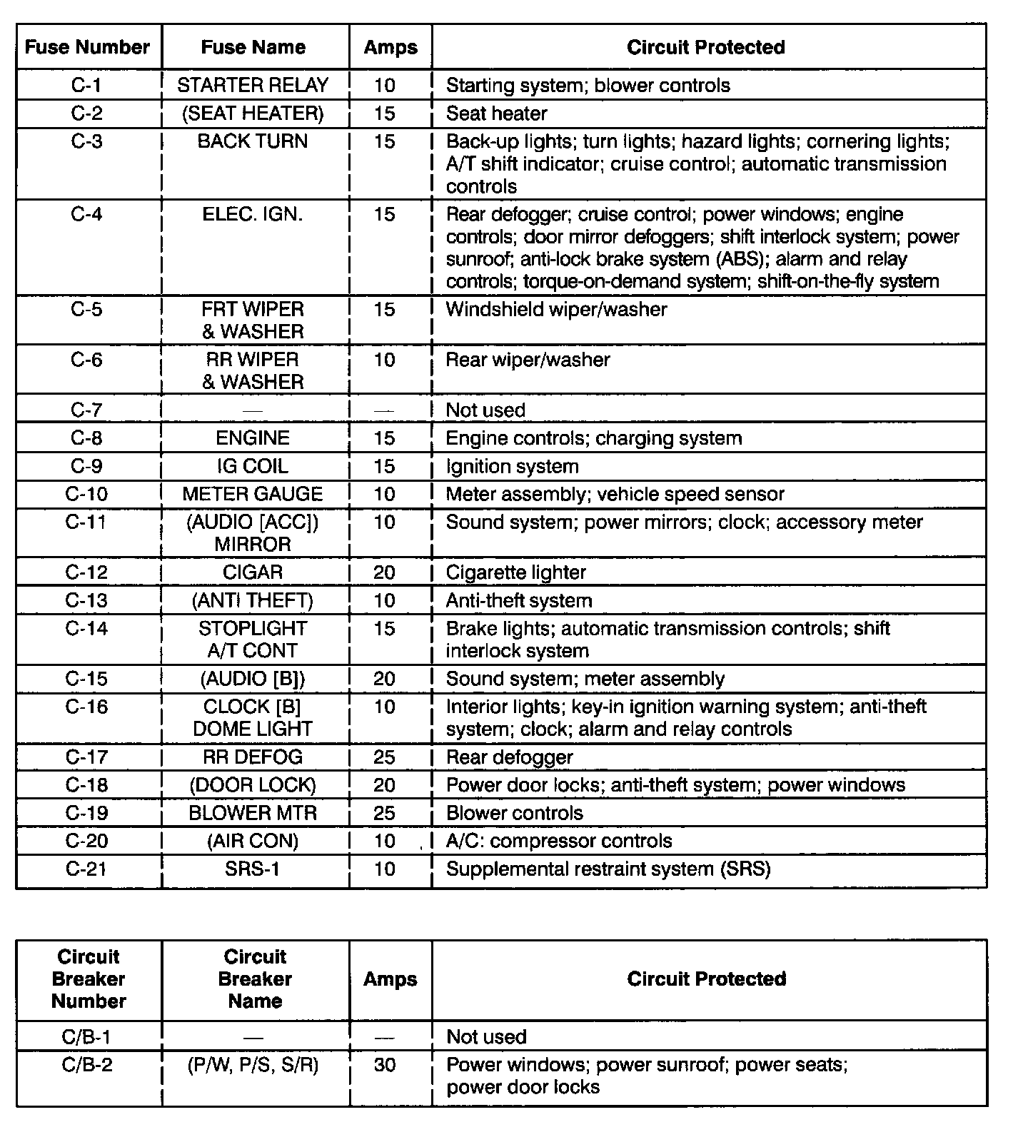 Fuse/Relay Box Fuse Chart (Part 1 Of 2):