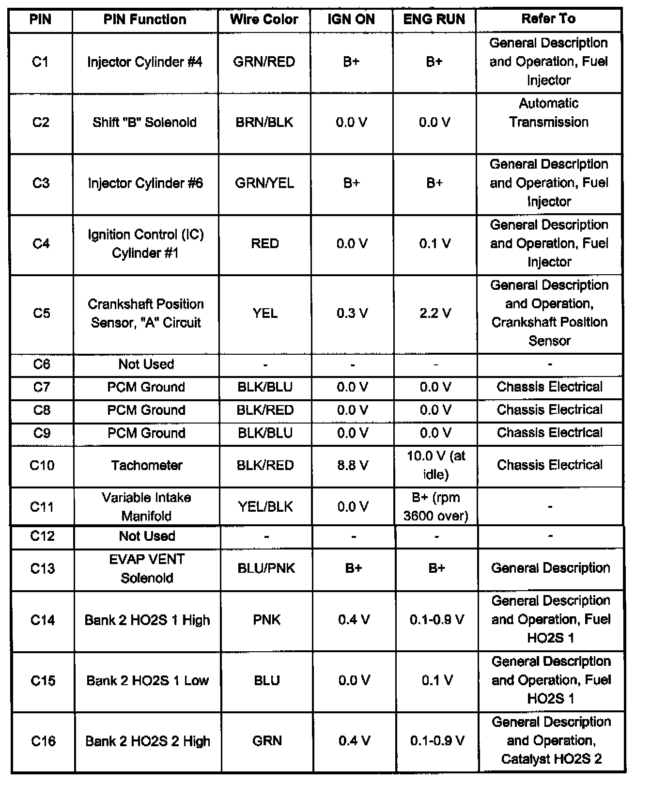Pin C1 - C16: