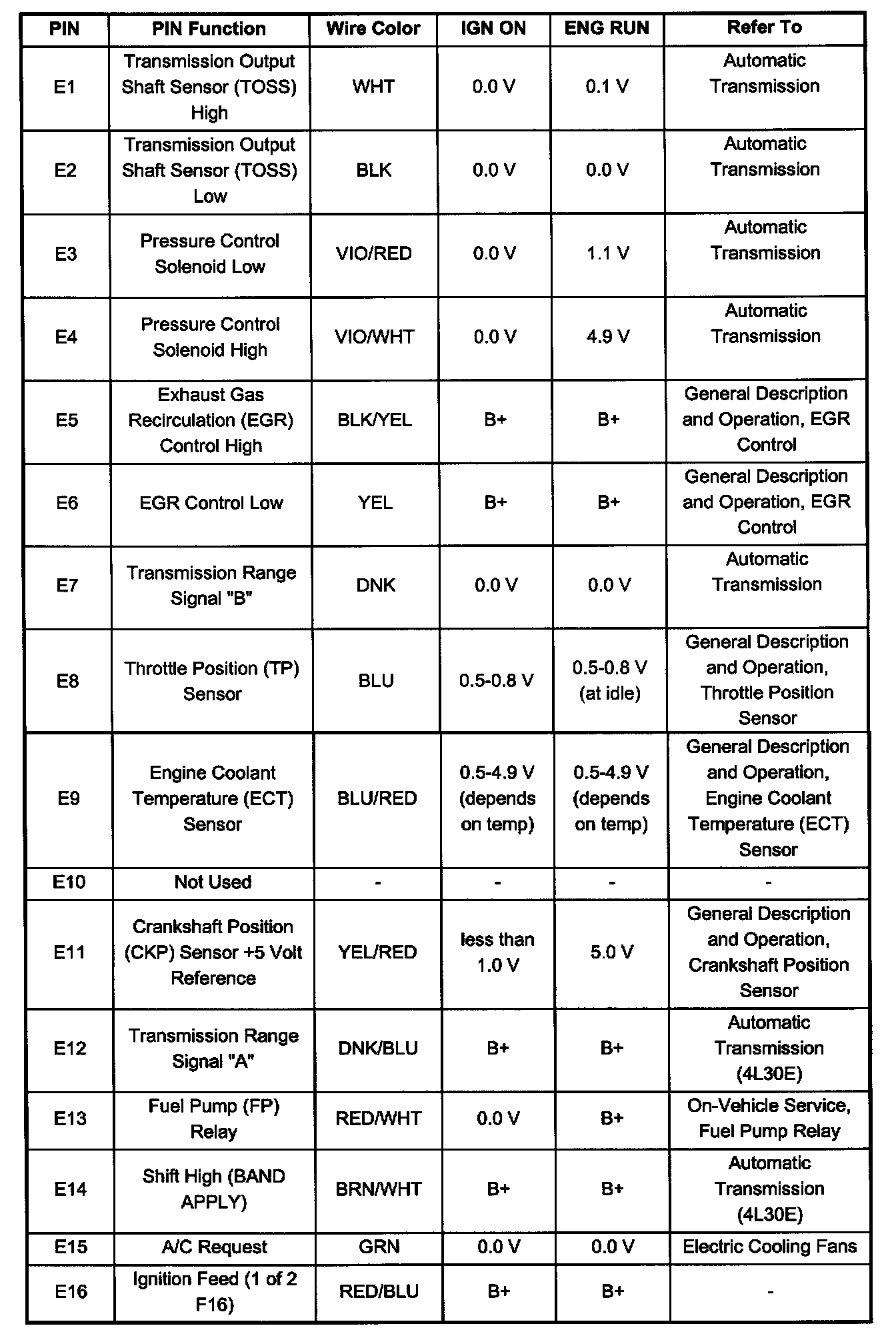 Pin E1 - E16: