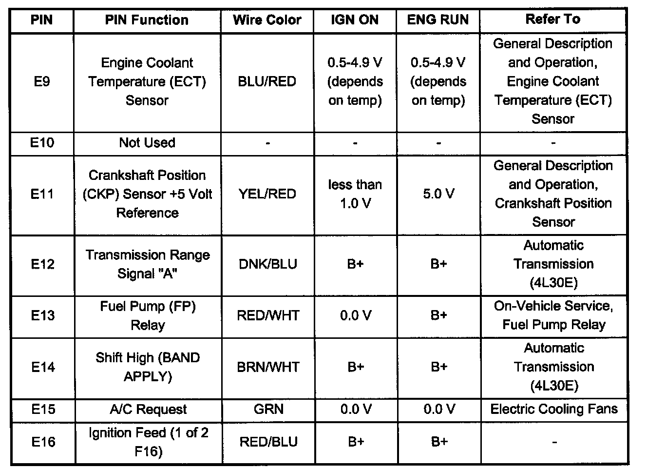 Pin E9 - E16: