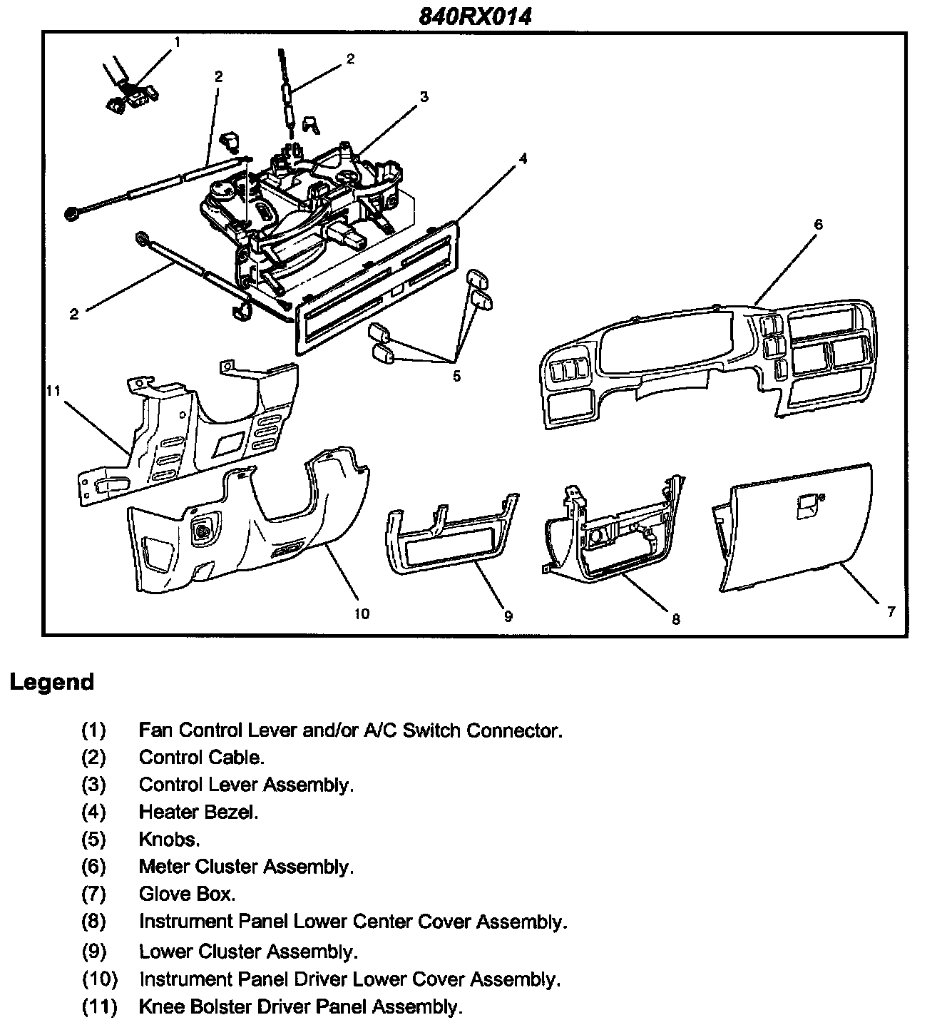 11. Remove fan control lever and/or air conditioning (A/C) switch connector.