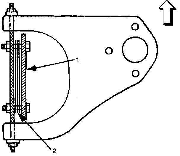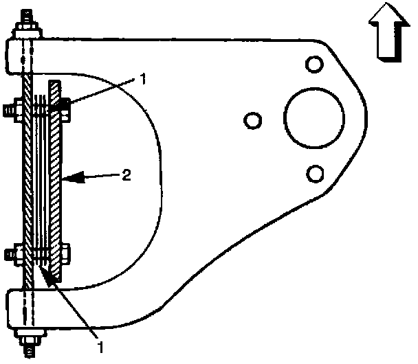 The caster angle can be adjusted by means of the caster shims (1) installed between the chassis frame (2) and fulcrum pins.