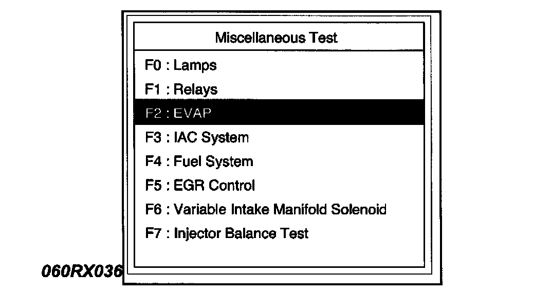 4. Select F2: EVAP Test in the Miscellaneous Test.