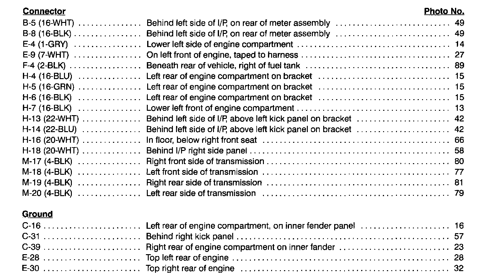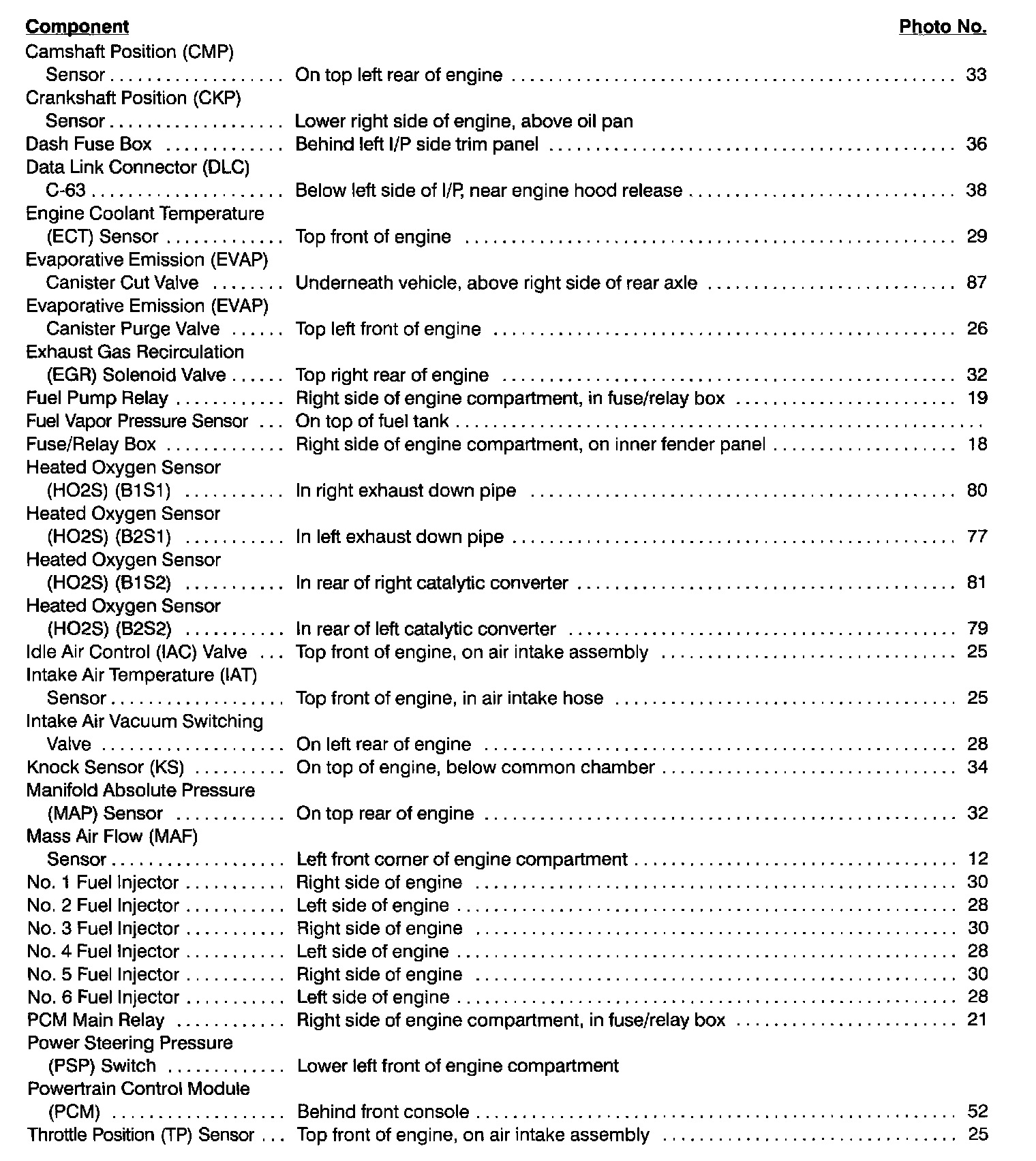 Component Location Index photographs can be found at Component Locations.