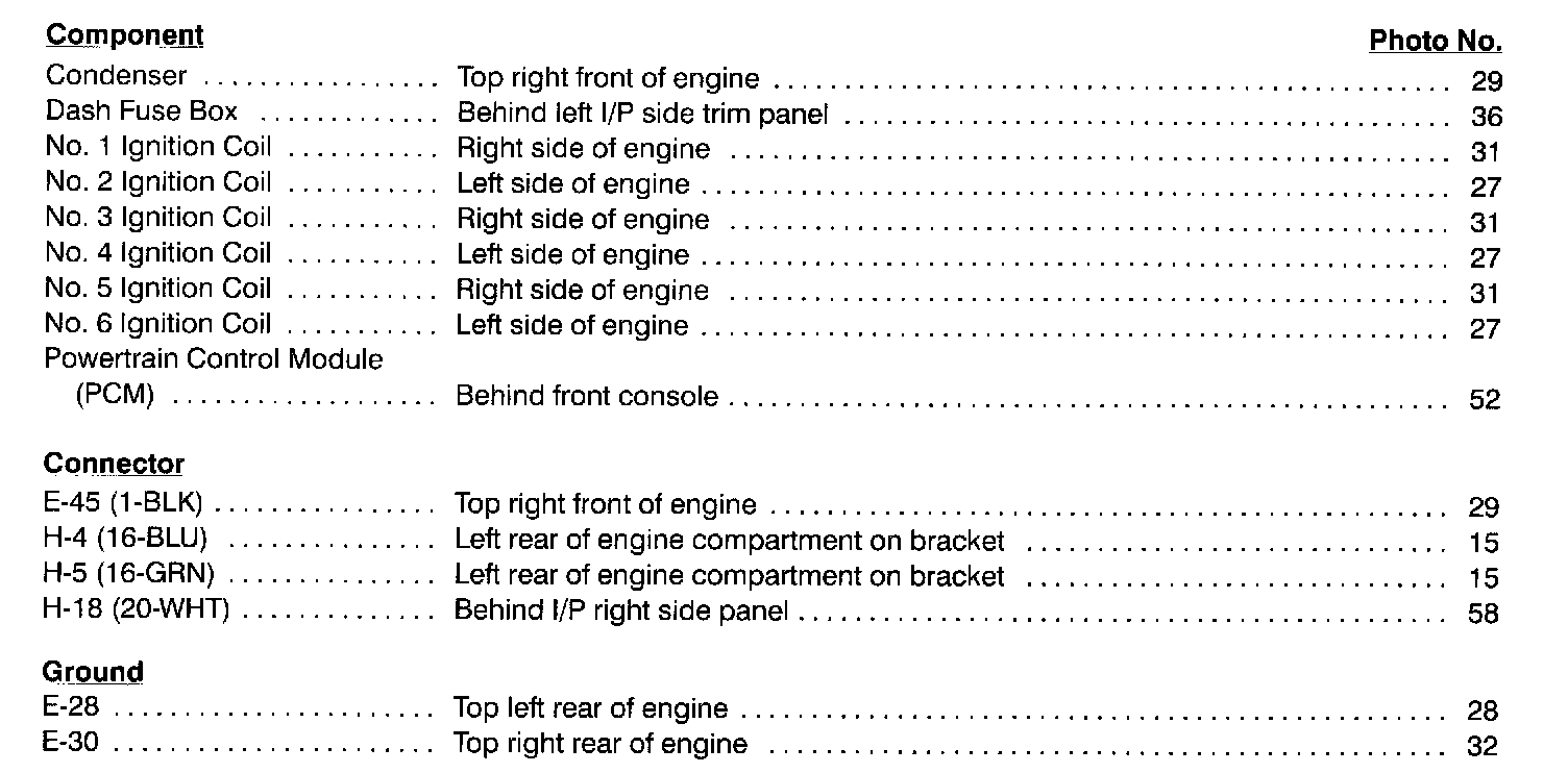 Component Location Index photographs can be found at Component Locations.