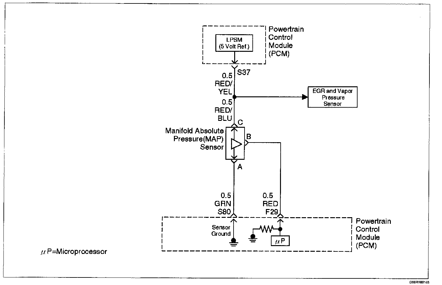 The manifold absolute pressure (MAP) sensor measures the changes in the intake MAP which result from engine load (intake manifold vacuum) and engine speed changes; and converts these into a voltage output. The powertrain control module (PCM) sends a 5-volt reference voltage to the MAP sensor. As the MAP changes, the output voltage of the sensor also changes. By monitoring the the sensor output voltage, the PCM knows the MAP. A lower pressure (low voltage) output voltage will be about 1 - 2 volts at idle. Higher pressure (high voltage) output voltage will be about 4 - 4.8 volts at wide open throttle. The MAP sensor is also used, under certain conditions, to measure barometric pressure, allowing the PCM to make adjustments for different altitudes. The PCM uses the MAP sensor to diagnose proper operation of the EGR system, in addition to other functions.