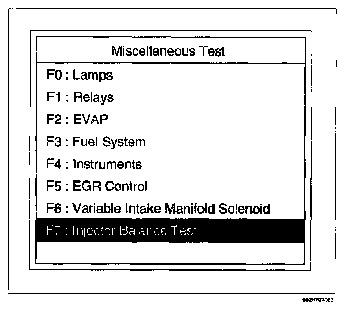 4. Select F7: Injector Balance Test in the Miscellaneous Test.