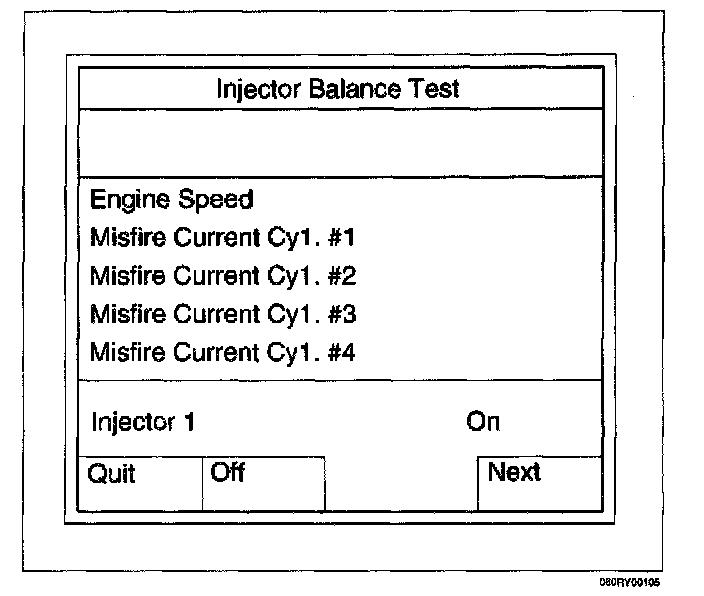 Injector Balance TestThis test is conducted to make sure the appropriate electric signals are being sent to injectors Nos. 1-6.