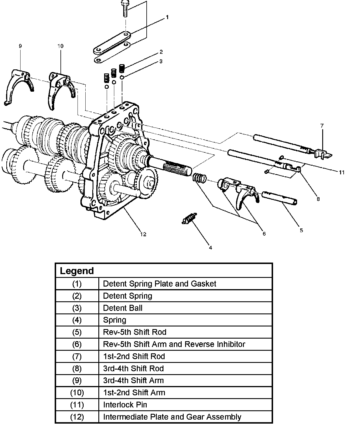 Inter. Plate W/ Gear Assem., Detent, Shift Arm, & Interlock Pin