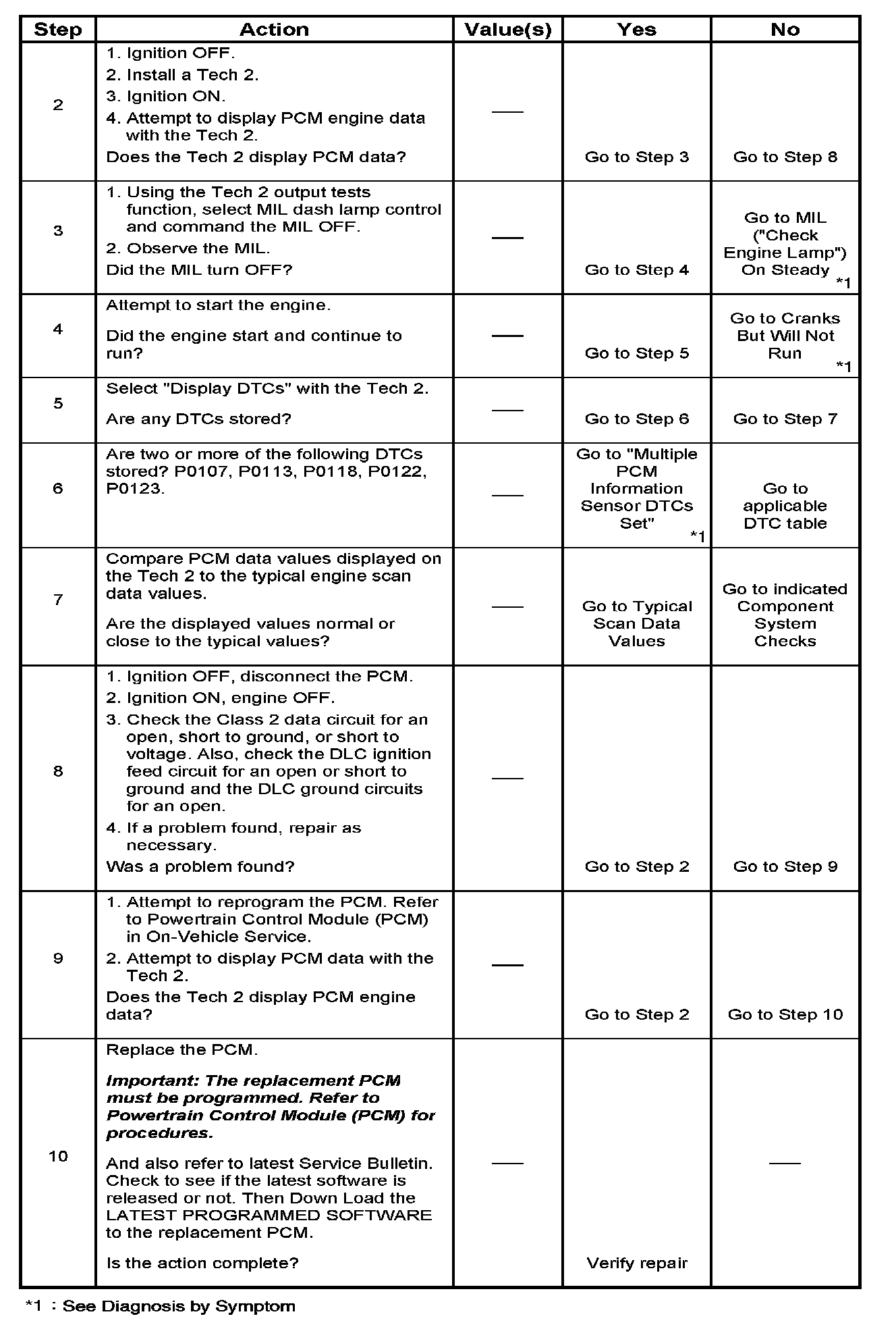 7. A Tech 2 parameter which is not within the typical range may help to isolate the area which is causing the problem.