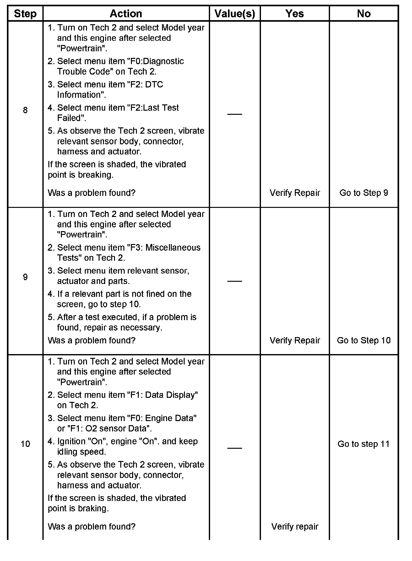 - Snapshot the engine data at the Tech 2. and observe variation of the any data, faulty data, fixed data and etc.