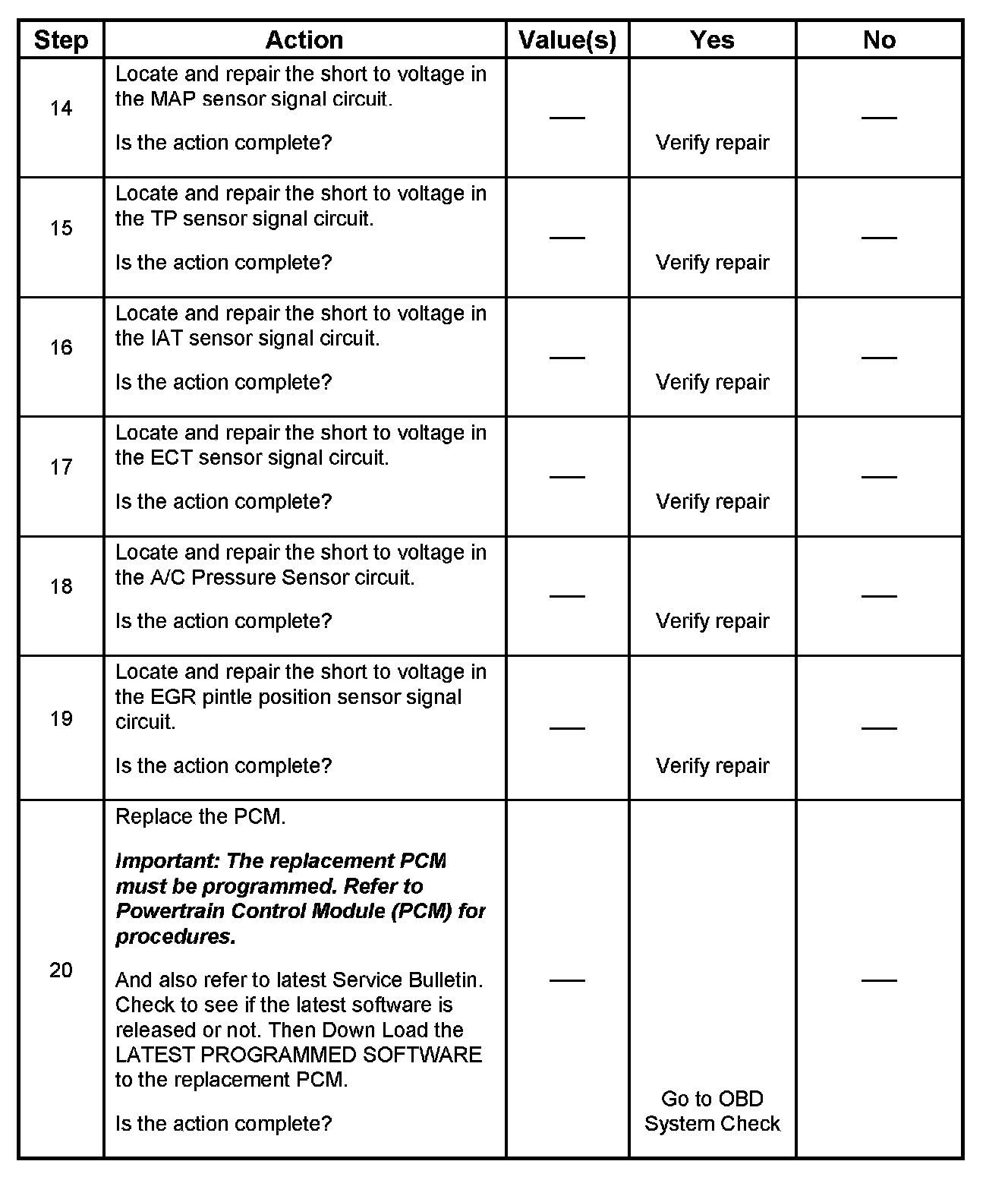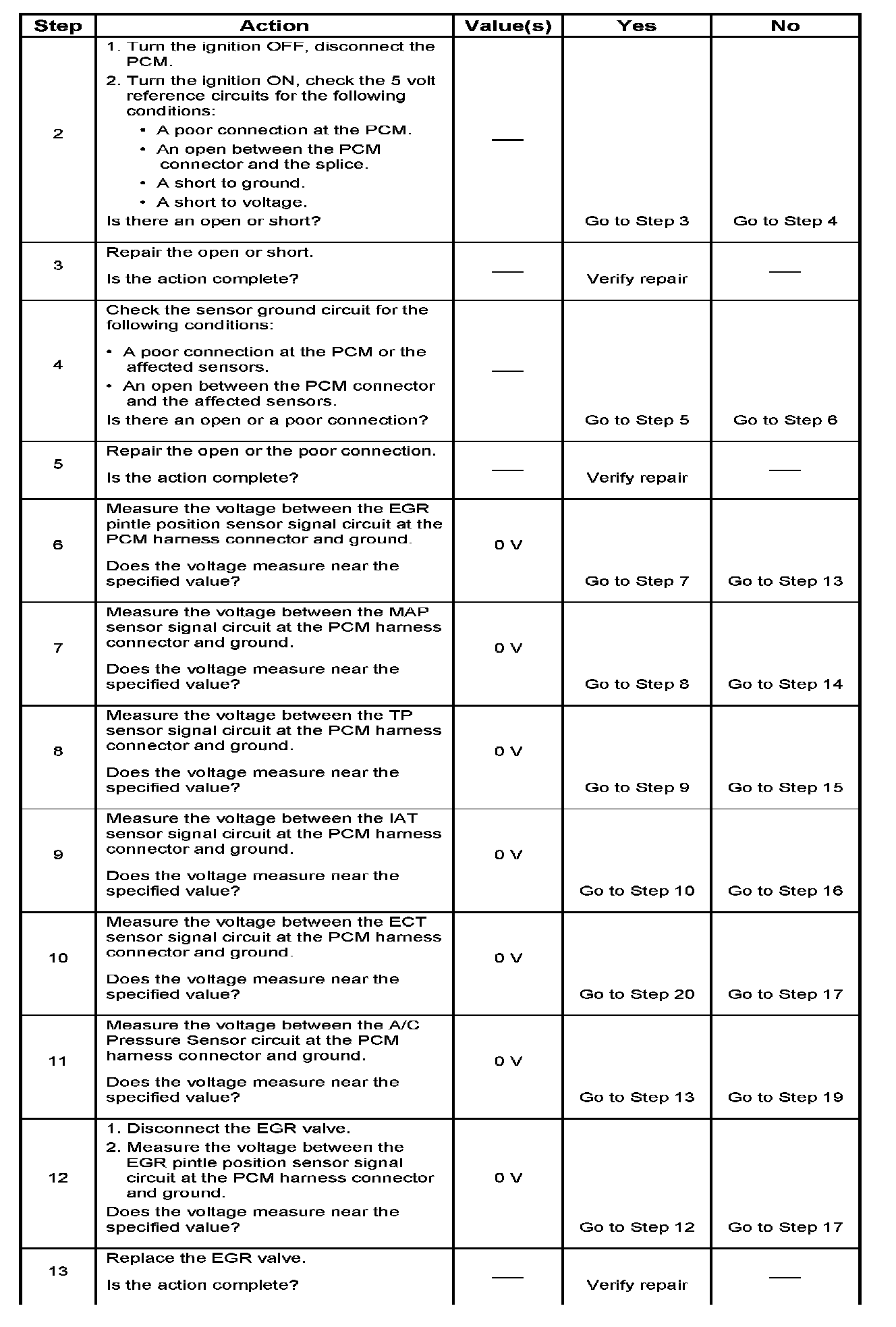 IMPORTANT: If a sensor input circuit has been shorted to voltage, ensure that the sensor is not damaged. A damaged sensor will continue to indicate a high or low voltage after the affected circuit has been repaired. If the sensor has been damaged, replace it.