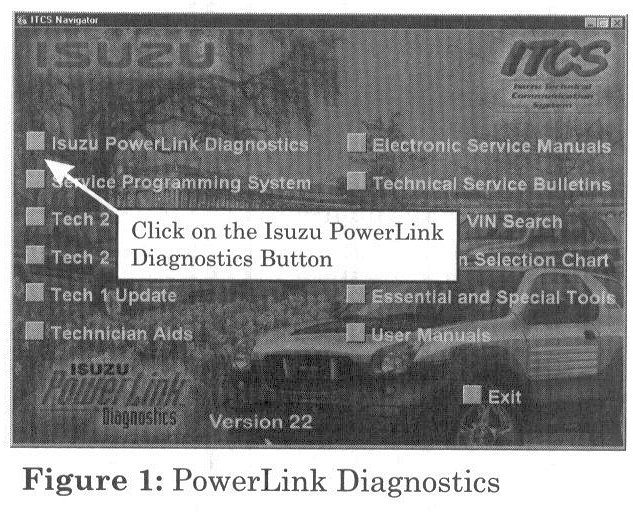 5. Click on the Isuzu PowerLink Diagnostics button. (Figure 1)