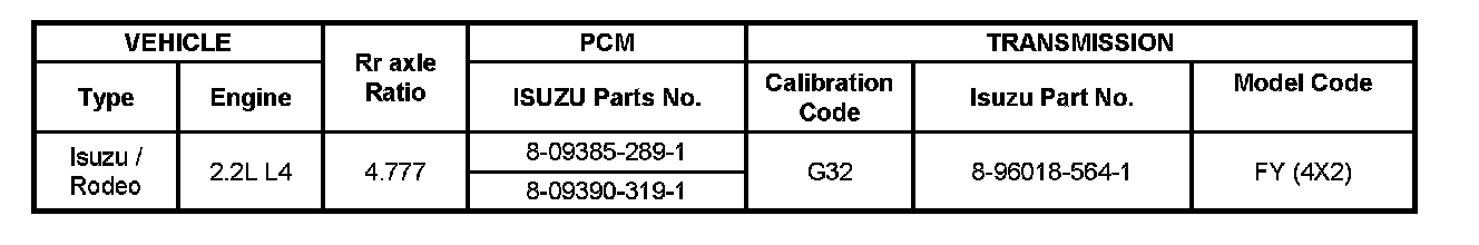 The chart contains a list of all important information concerning rear axle ratio,
