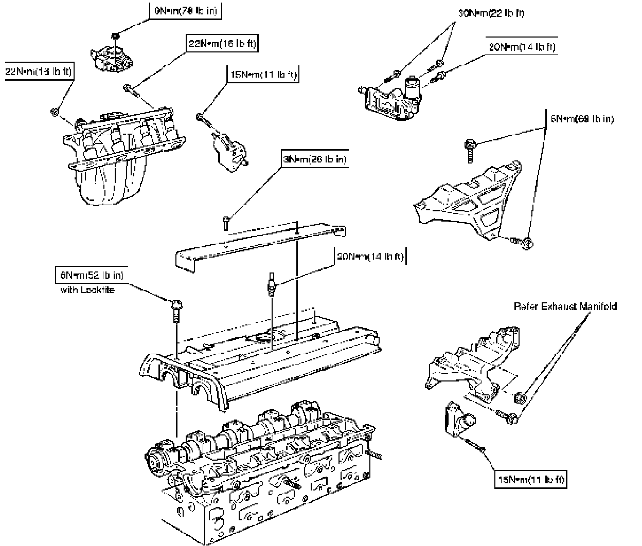 Spark Plug, Throttle Body, EGR Valve Adapter Assembly, Bypass Housing Assembly, Thermostat Assembly, Inlet Manifold Assembly, Exhaust Manifold Assembly, Heat Shield, Ignition Cable Cover