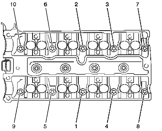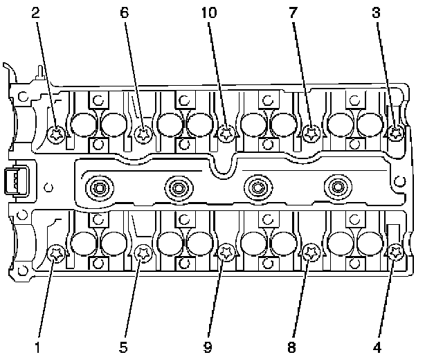 Note: Remove camshaft bearing caps in reverse order of installation.