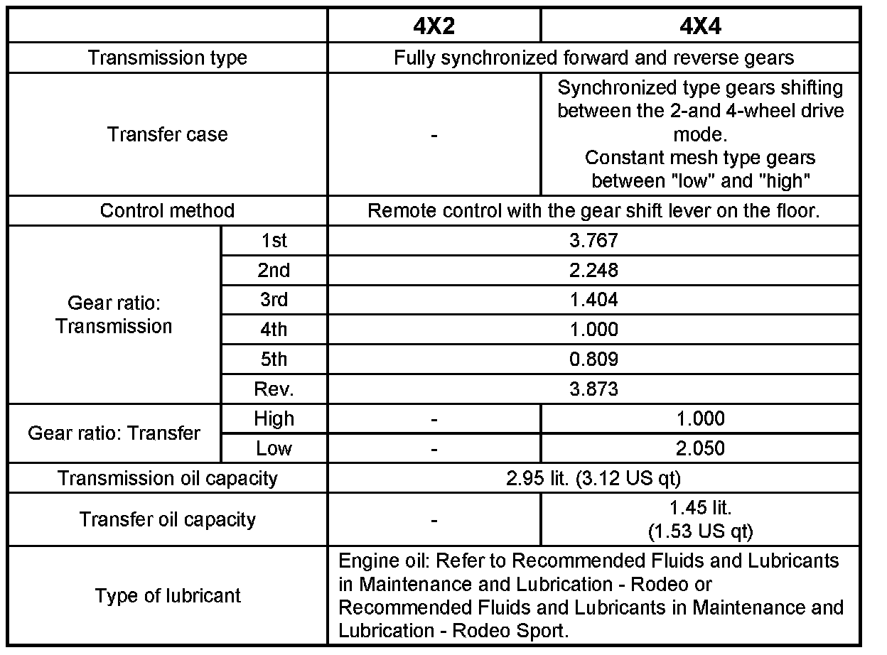 Rodeo S 2WD L4-2.2L