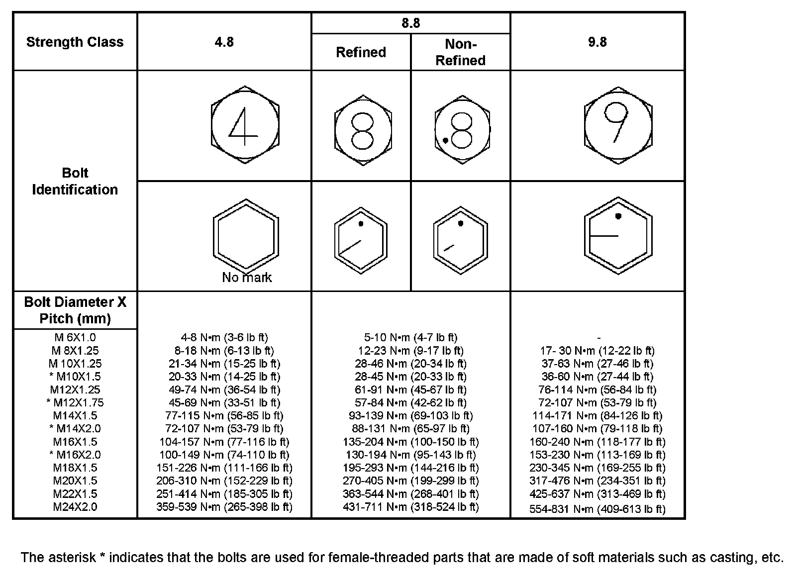 Standard Bolts Torque Specifications: