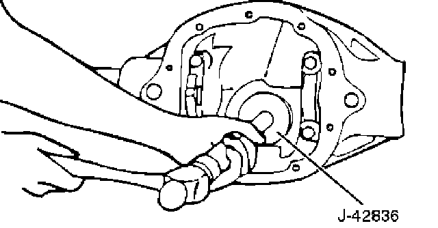 6. Remove differential side bearings using remover J-42379 and plug J-39830.
