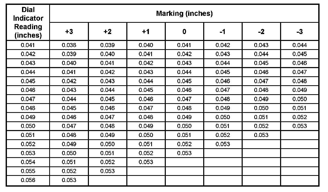 Note: Dial indicator set should be capable of a minimum travel of 5.08 mm (0.2 inch).