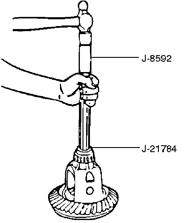 - Drive the bearing until the bearing cone seats on the pinion shims.