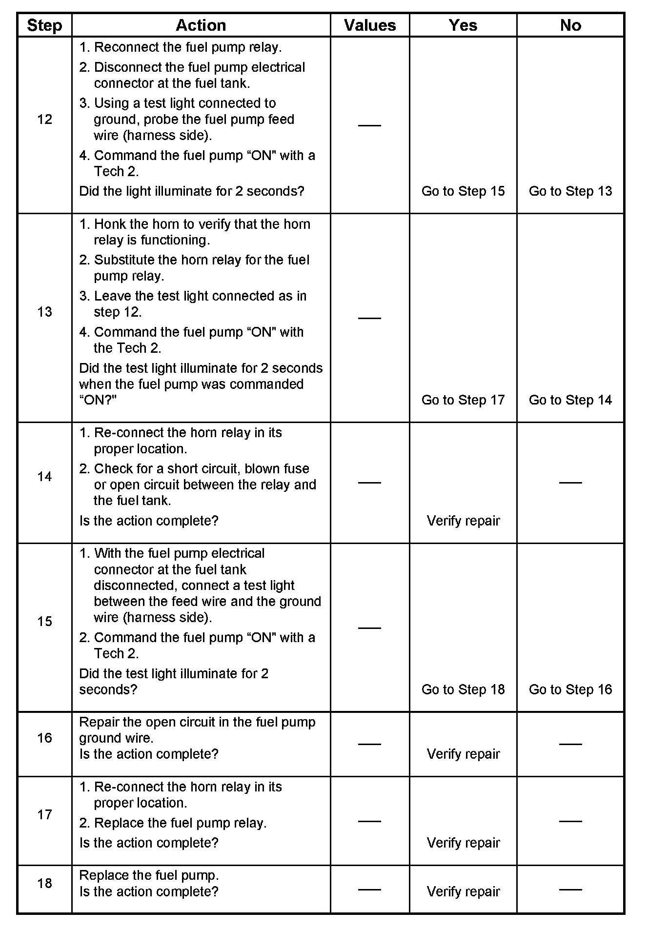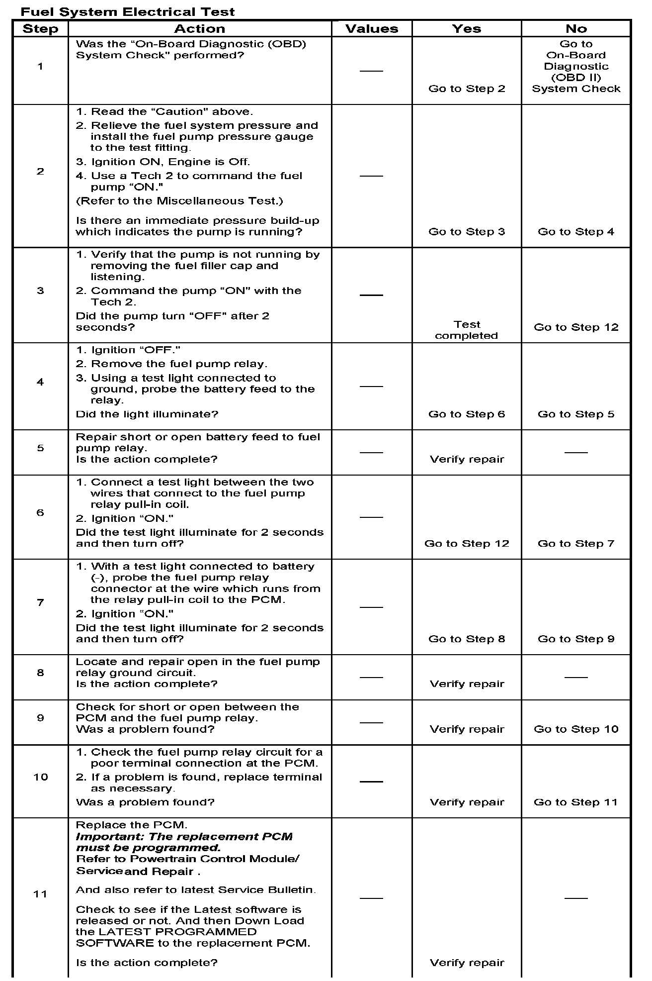 Fuel System Electrical Test
