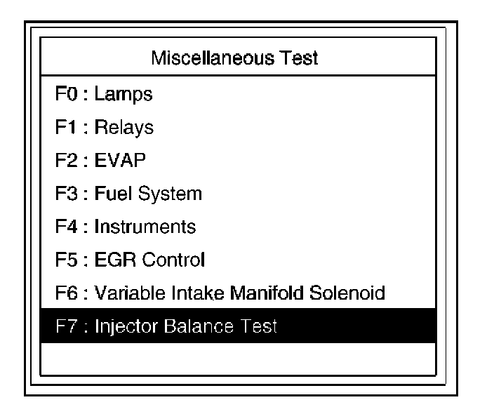 4. Select F7: Injector Balance Test in the Miscellaneous Test.