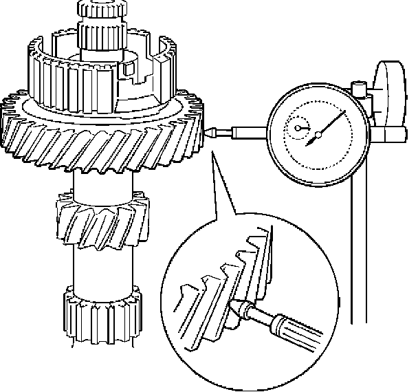 c. Using a dial indicator, measure the counter 5th gear radial clearance.