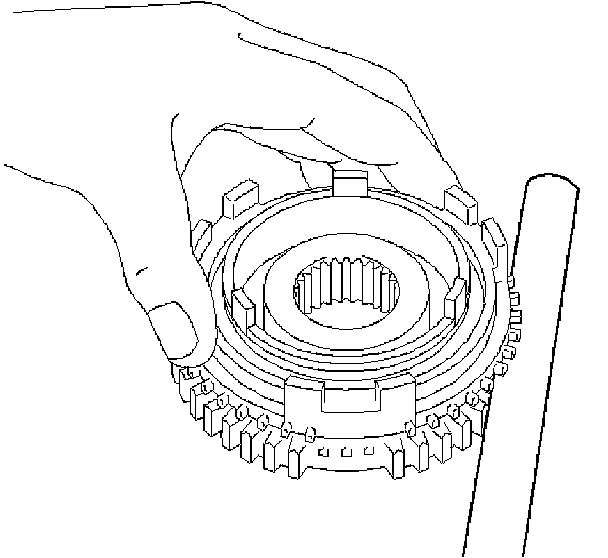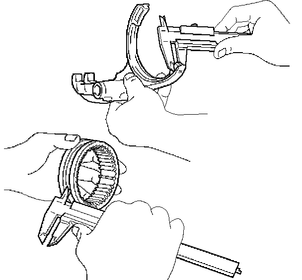 b. Using a vernier caliper, measure the center groove of hub sleeve No. 3. Calculate the clearance between the hub sleeve No. 3 and shift arm.