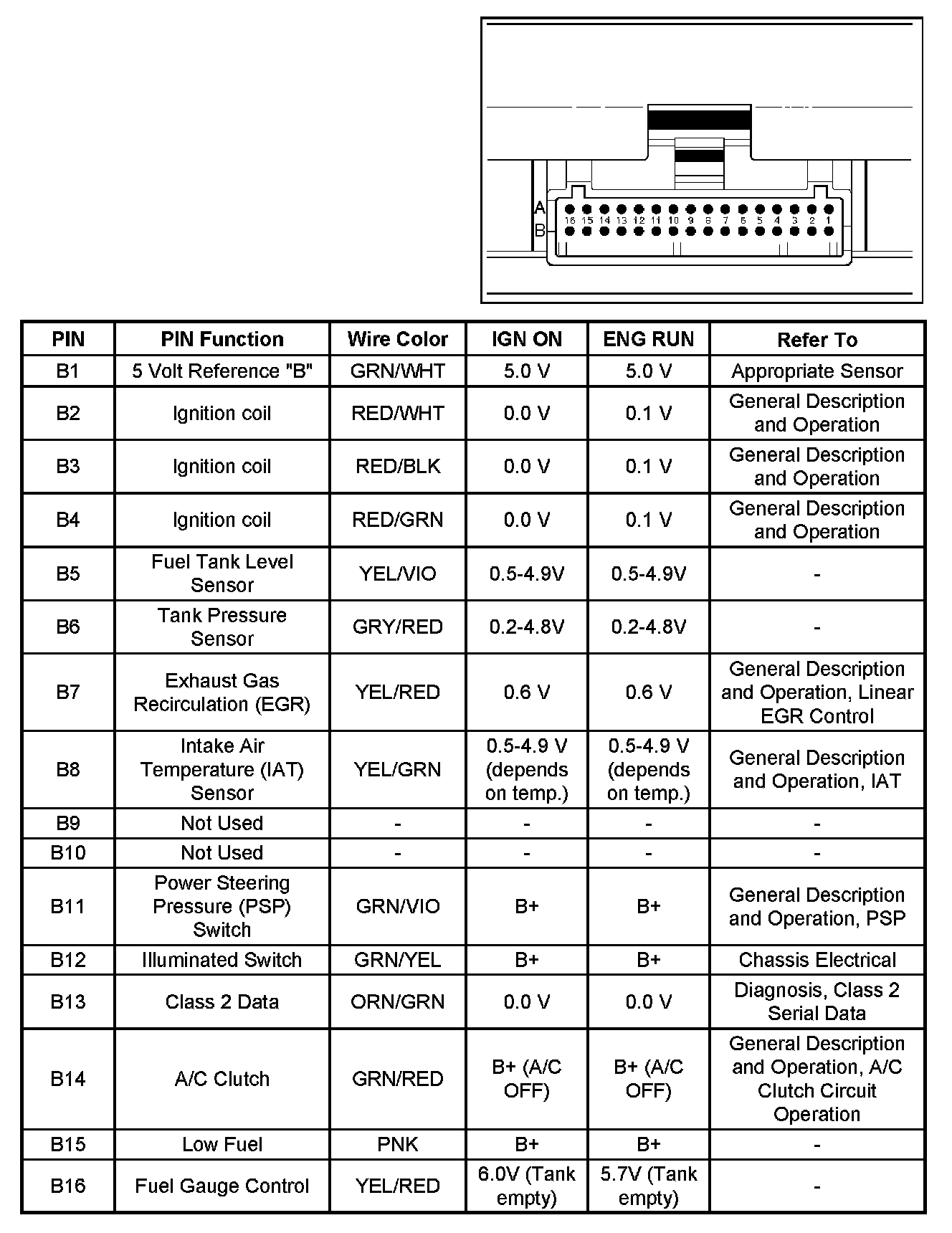 PCM Pinout Table, 32-Way Red Connector - Row "B":