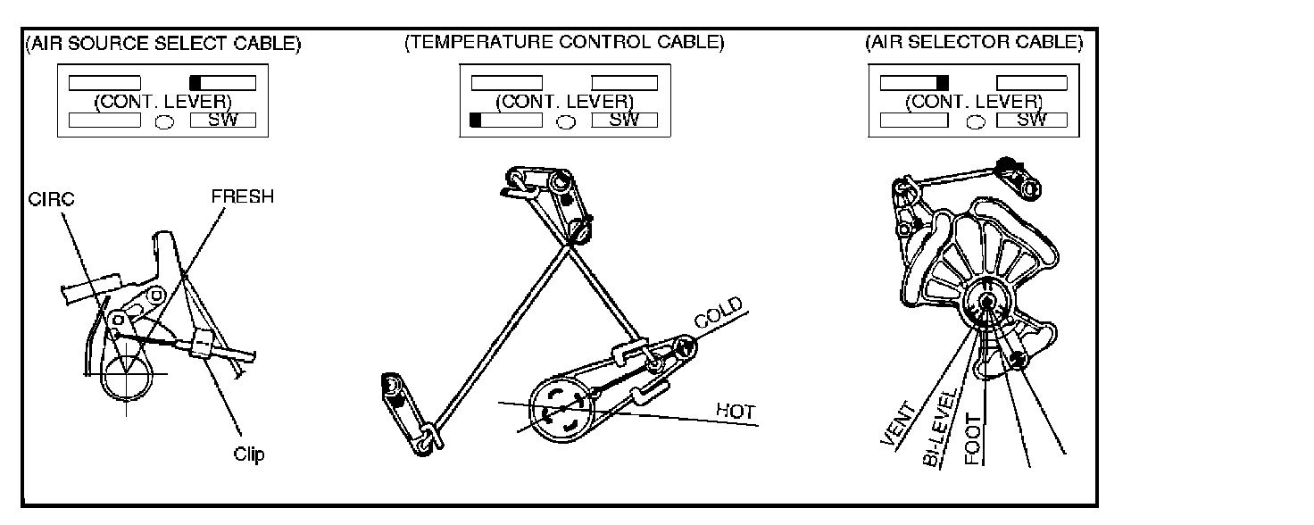 2. Connect the control cable at the DEFROST position of the mode control link of the heater unit and secure it with the clip.