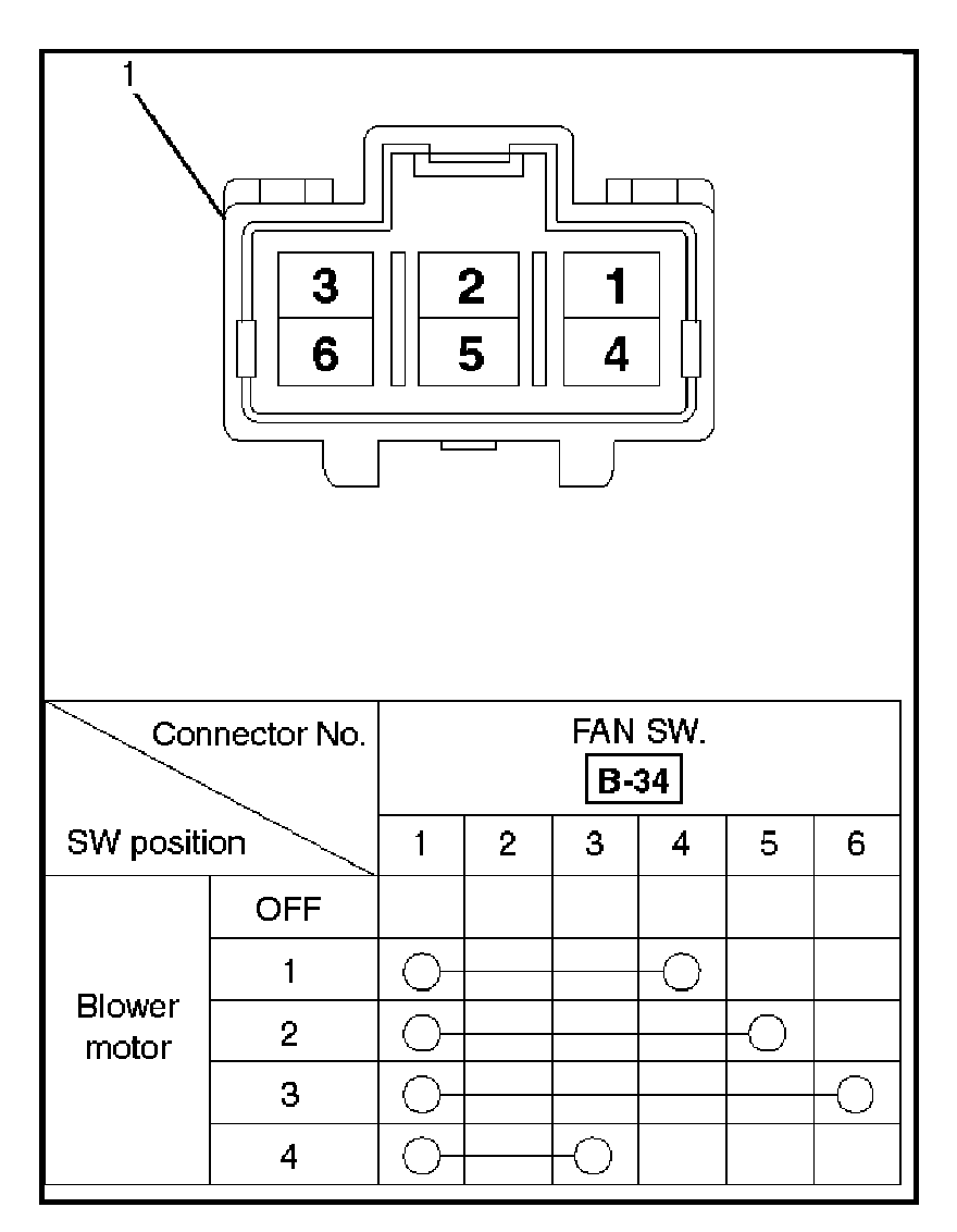 Check for continuity between the terminals of the fan control lever (1).