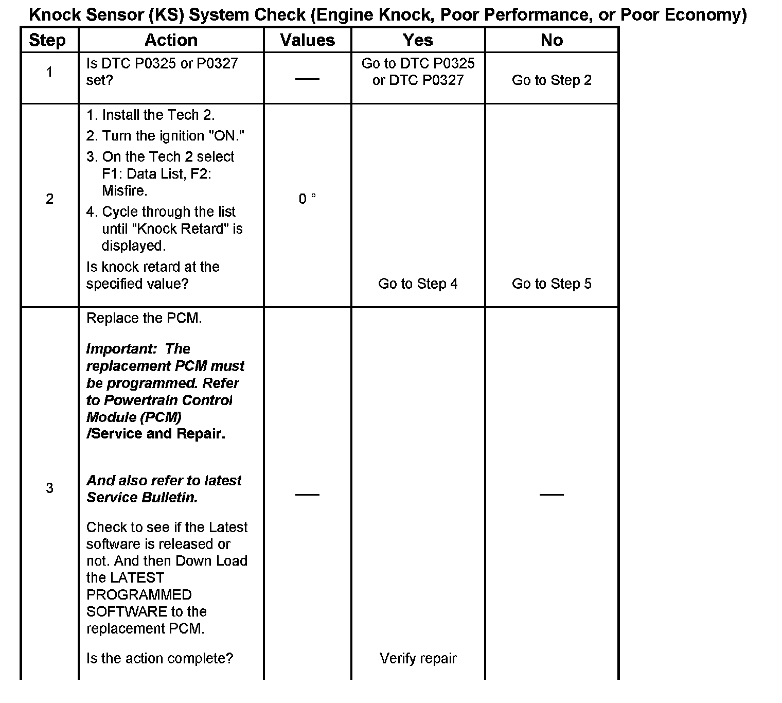 Knock Sensor (KS) System Check (Engine Knock, Poor Performance, or Poor Economy)