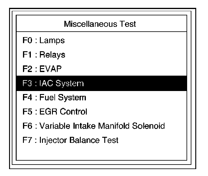 4. Select F3: IAC System Test in the Miscellaneous Test.