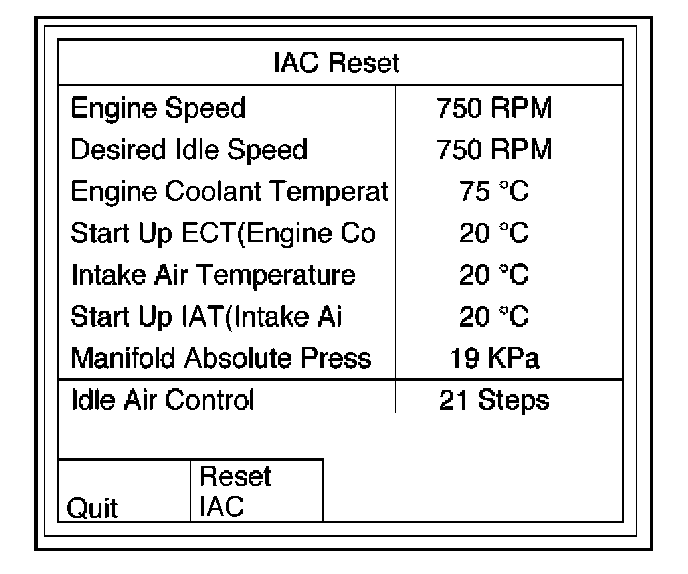 13. Control IAC Reset and check data list. If data list changes, the IAC has been Reset.