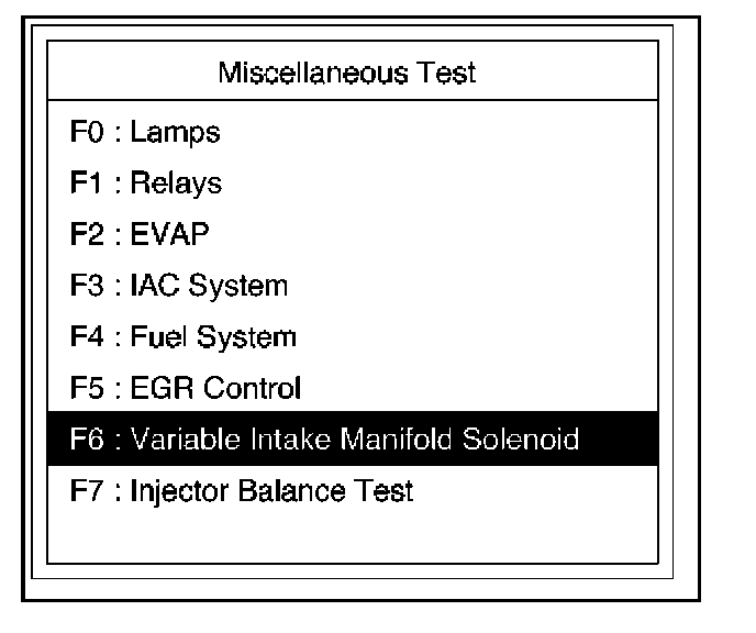 4. Select F6: Variable Intake Manifold (VIM) Solenoid Test.