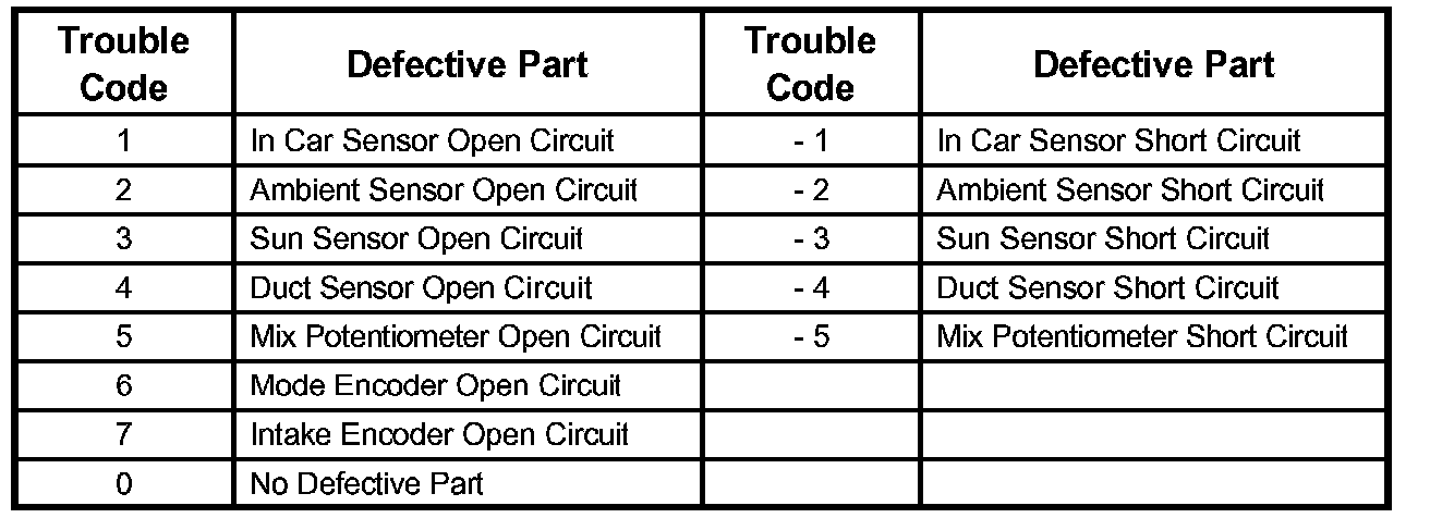 Step 1 - Trouble Code Table