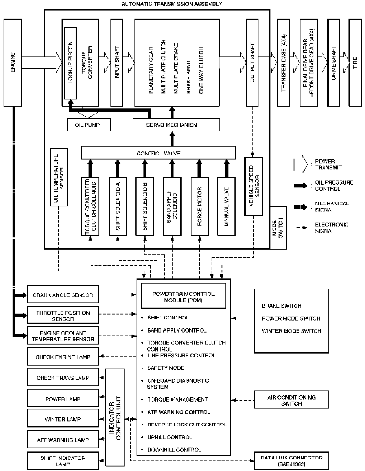- Electronic control selects the optimum shift mode according to the driving conditions.