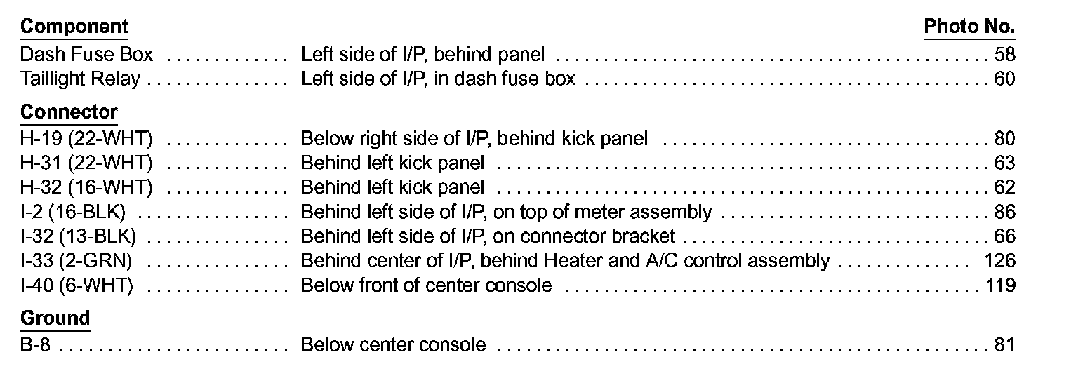 Park, Tail, And License Lights Index Image 110-3:
