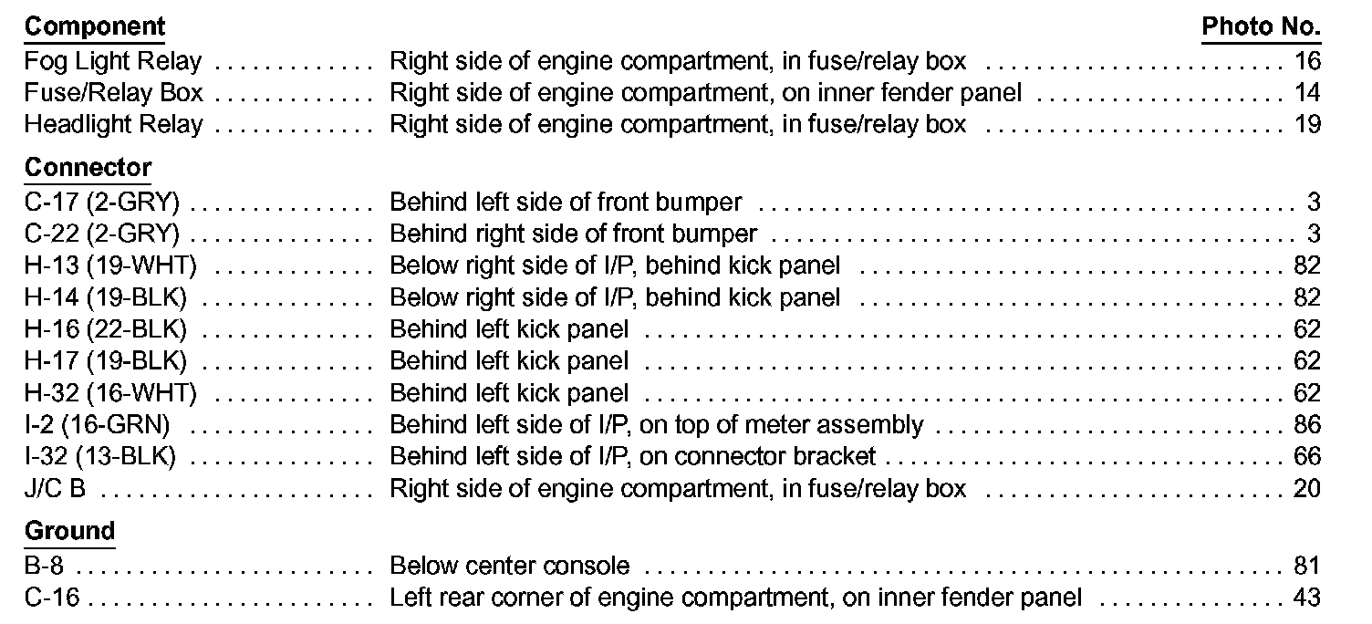 Headlights And Fog Lights Index Image 100-2: