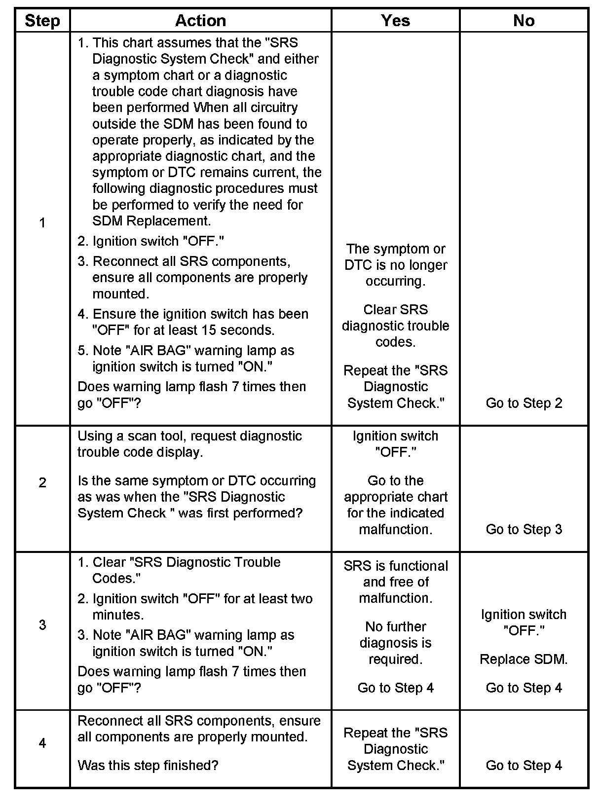 3. When all circuitry outside the SDM has been found to operate properly, as indicated by the appropriate diagnostic chart, then and only then should the SDM be replaced.