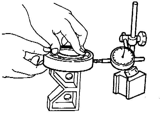 Note: If the bearing is rotated excessively, the rollers may be damaged. So, rotate the bearing slowly with your hand. Apply grease to the bearing, and check the smoothness of the bearing while slowly rotating the race with your hand.