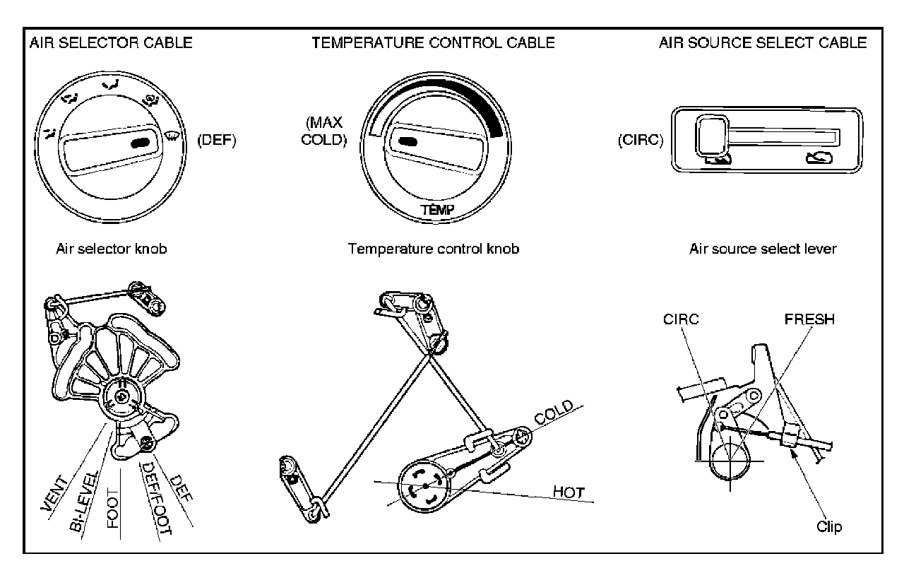 2. Connect the control cable at the "DEFROST" position of the mode control link of the heater unit and secure it with the clip.