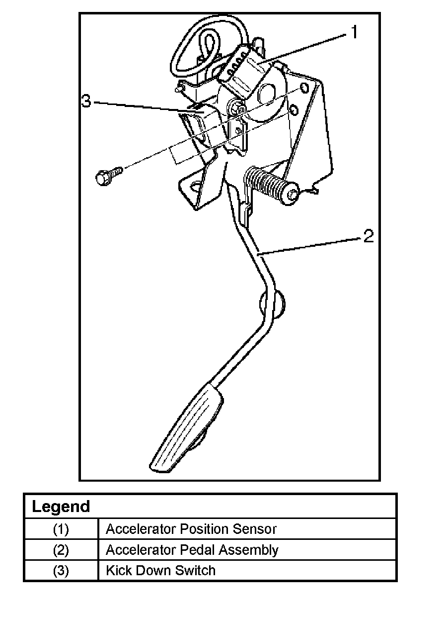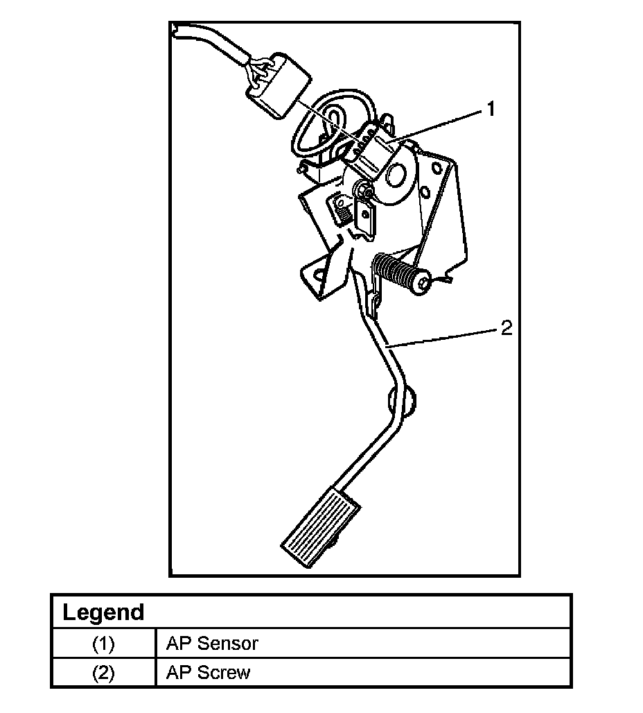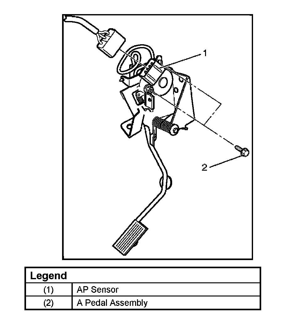 CAUTION: Remove the Accelerator (A) pedal assembly as a unit to have it serviced. Do not remove the Accelerator Position (AP) sensor on the A pedal. If the AP sensor is removed for emergency cause, refer to given items as necessary.