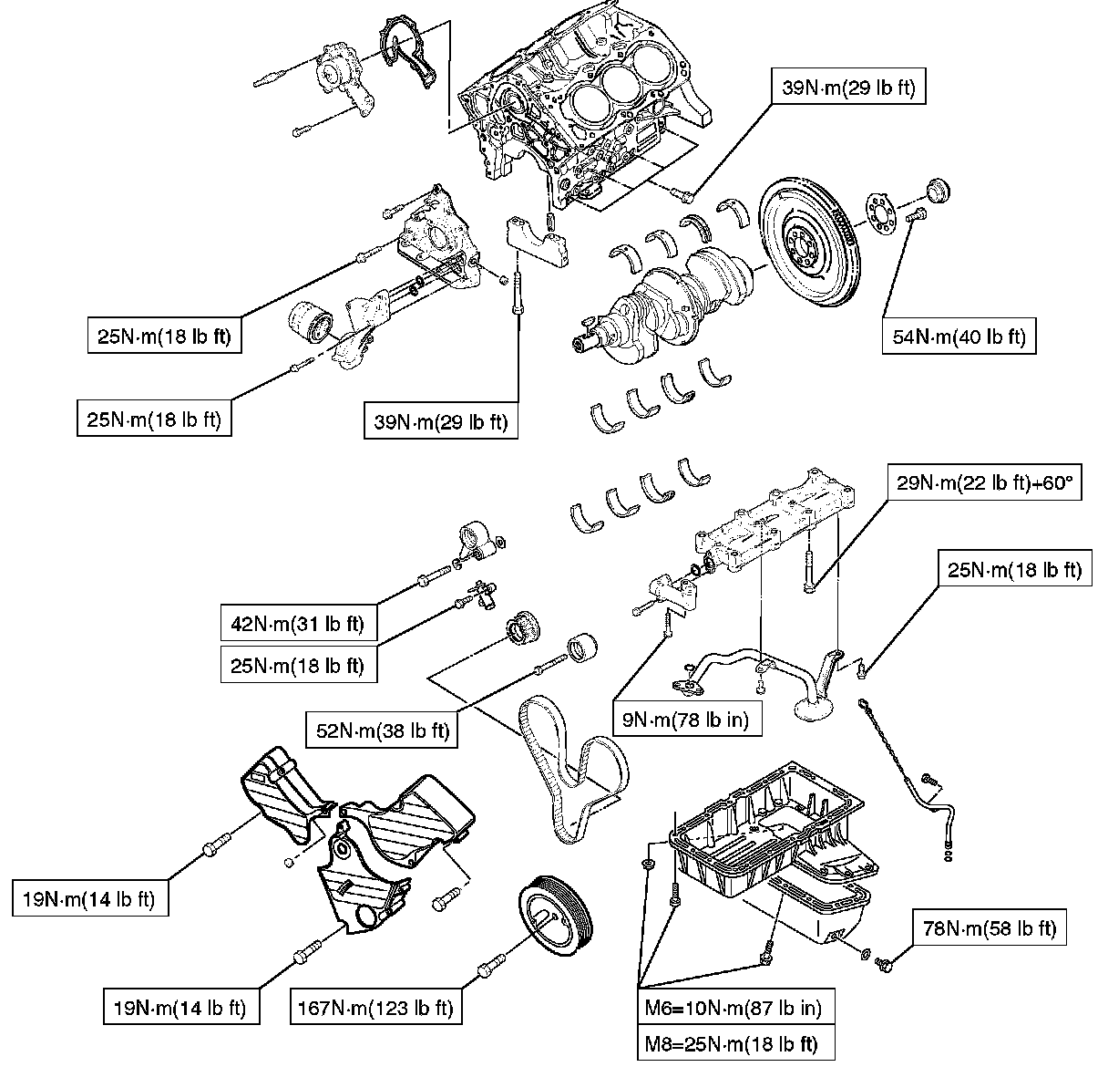 , Timing Pulley, Timing Belt Cover, Oil Pump, Oil Gallery, Oil Strainer and Water Pump