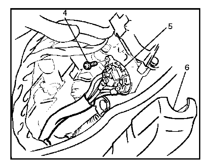 6. Disconnect the connector, remove the screw (4) and then remove the starter switch (5).
